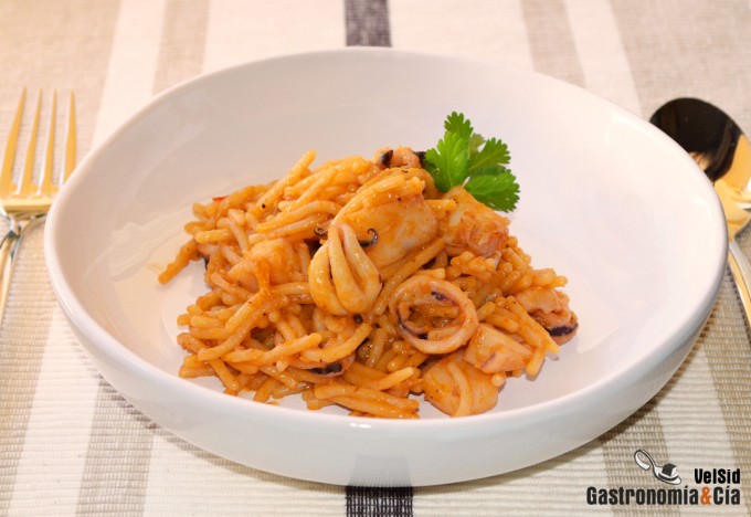 Fideuá con sepia y calamares