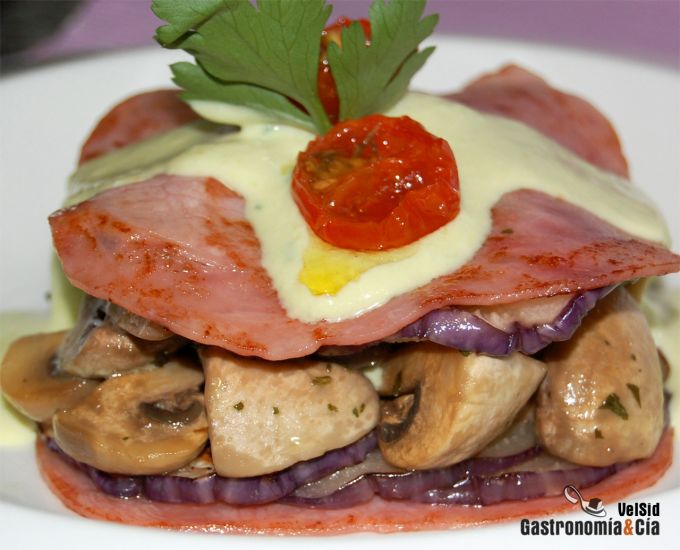 Lasaña de jamón con berenjenas y champiñones
