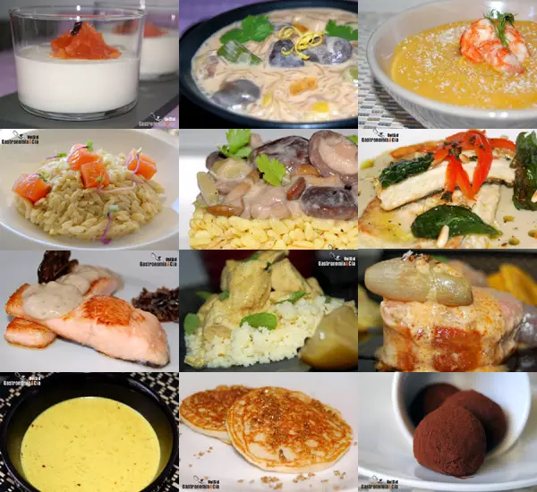 Puede suceder que habiendo cocinado pocas veces con leche de coco, no se sepa en qué platos se puede emplear, como siempre, os animamos a que os atreváis probar, seguro que nunca más se quedará un bote de leche de coco en la despensa demasiado tiempo. A ver por cuál de estas recetas con leche de coco os apetece empezar… las identificaréis en el orden habitual, de izquierda a derecha y de la parte superior a la inferior de la fotografía.