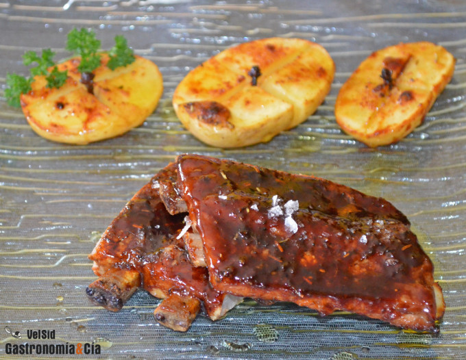 Costillas de cerdo al horno con glaseado de bourbon y miel