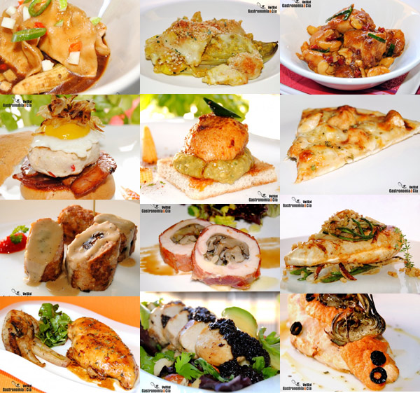 A continuación os listamos y adjuntamos una breve descripción de las recetas de pollo que podréis ampliar pulsando sobre ellas y que podréis identificar con las fotografías de la imagen que ilustra este post en el orden de siempre, de izquierda a derecha, esperamos que os gusten y que más de una y de dos… os apetezca cocinarlas pronto.