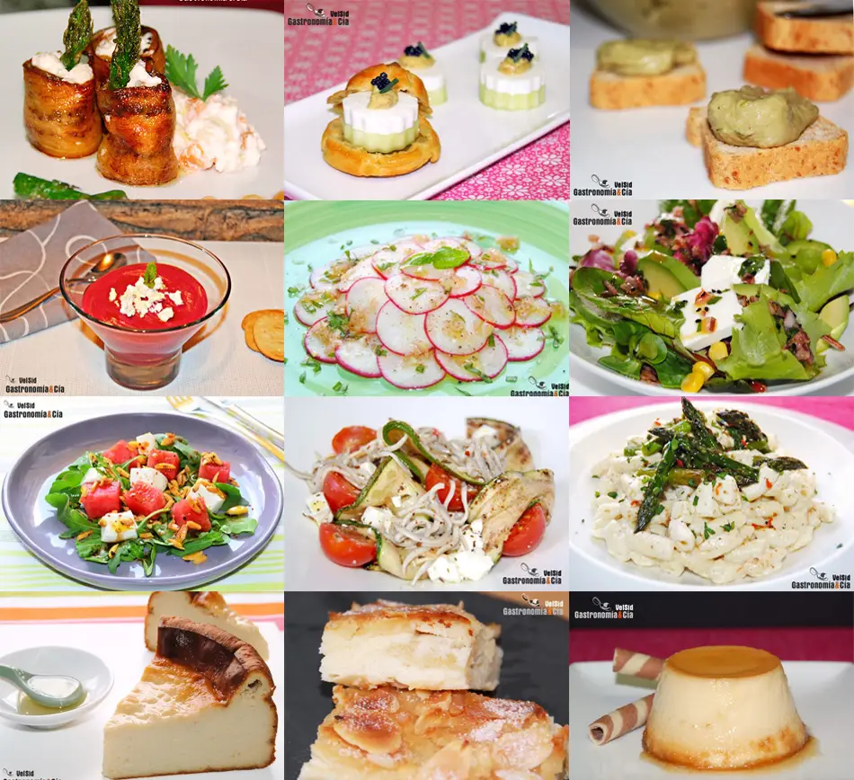 Para el recopilatorio dominical hemos seleccionado algunas de las recetas que elaboramos con este queso, intentando que sean muy variadas, aunque no hemos podido evitar presentaros dos de las tartas de queso que elaboramos con él. También hay varias ensaladas y aperitivos que combinan con distintos ingredientes, berenjena, alcachofa, rábano, remolacha…