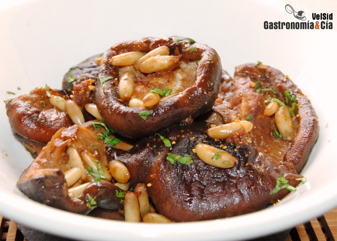 Shiitake marinado con soja y jengibre
