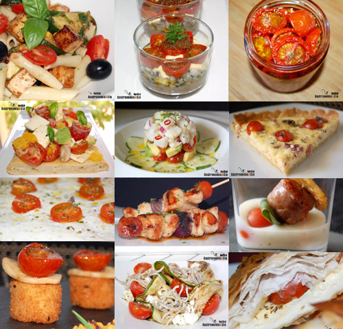 El tomate es un fruto de verano fresco, jugoso y sabroso que nos proporciona múltiples placeres al paladar, siempre que encontremos tomates de calidad, cultivados de forma tradicional y cosechados en su mejor momento. Una de las sorpresas que hace unos años nos dio el mercado son los tomates mini o tomates cherry, que además de estar ricos, llaman la atención en cualquier plato en el que los presentemos. Como en casi todas las cocinas entran hoy en día esta pequeña fruta, hoy os mostramos doce recetas con tomate cherry.