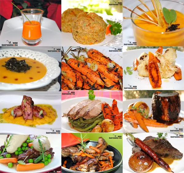 Como siempre, a continuación listamos las recetas con zanahorias en el orden de las fotografías, de izquierda a derecha, y accederéis a su explicación pulsando sobre el nombre de cada plato. Esperamos que encontréis muchas tentaciones para cocinar y disfrutar, son recetas con ingredientes al alcance de todos y fáciles de preparar.