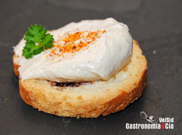 Crema de queso de cabra y pimientos con crumble de anchoa