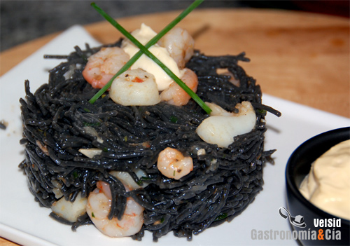 Arroz al azafrán con sepia y mayonesa de wasabi