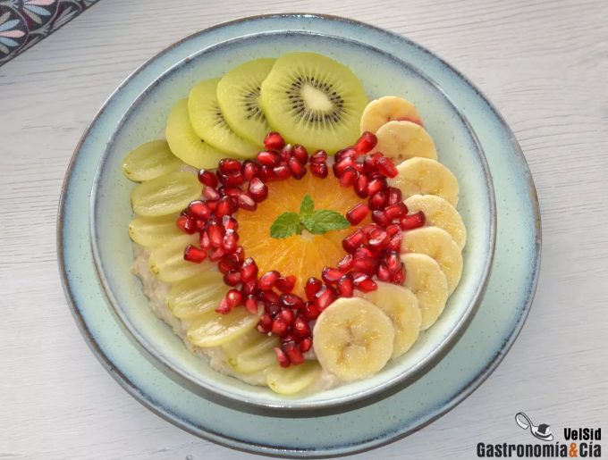 Porridge de café con plátano y crema de dátiles, avellanas y cacao
