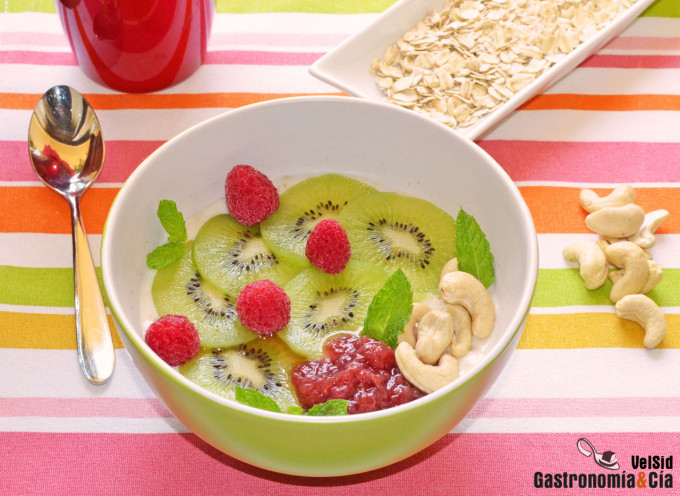Porridge con kiwi y frambuesas