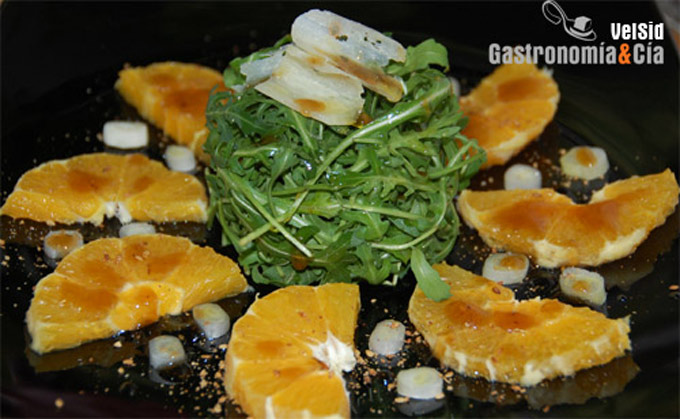 Ensalada de salmón ahumado, naranja y vinagreta de wasabi