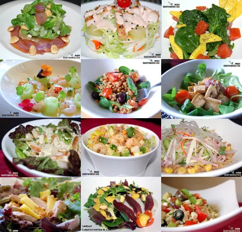 Dentro de estas Doce recetas de ensalada hay mucho para elegir, hojas verdes generalmente como base y para enriquecer en todos los sentidos podemos elegir queso, pollo, legumbres, pasta, gambas, frutas…