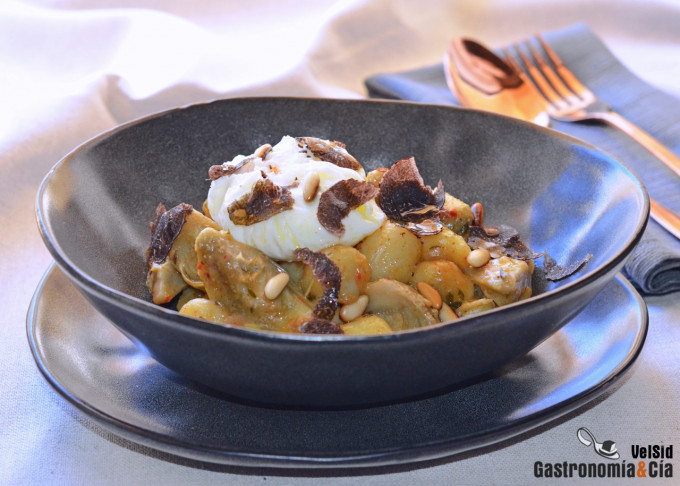 Esta semana los gnocchi son los protagonistas del recetario dominical, nos encanta esta especialidad italiana a base de patata y siempre solemos tener un paquete en la nevera, porque se puede hacer un plato rico y nutritivo en cinco minutos. Claro, que si tenemos tiempo y podemos hacer los ñoquis caseros mucho mejor, además, tenemos una nueva tabla para hacer gnocchi que tenemos ganas de estrenar. El caso es que si queréis hacer ñoquis tradicionales de patata, podéis tomar nota de nuestra receta pulsando aquí, hay infinidad de recetas para acompañarlos, unas de nuestras preferidas sin carne os lo presentamos en este post.