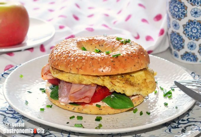 Bagel con jamón serrano y fresas