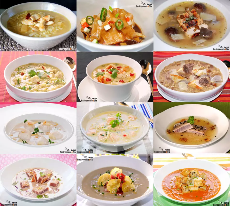 A continuación tenéis el acceso a las recetas de sopa con pollo, pavo, jamón, salmón, atún, rape, tofu… Podéis identificar foto y plato siguiendo el orden de siempre, de izquierda a derecha y de arriba abajo. Esperamos que os gusten y que empecéis la semana con una rica y nutritiva sopa.