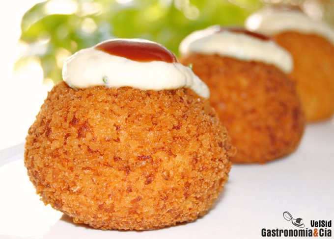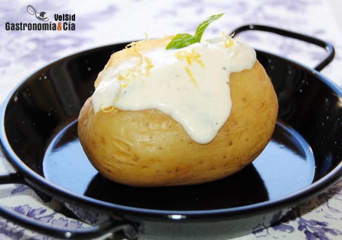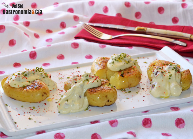 Patatas asadas y crujientes con mahonesa ligera de jamón