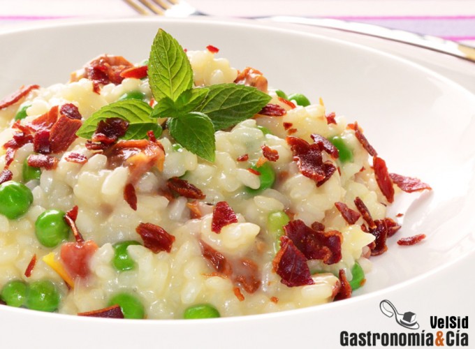 Risotto de guisantes y jamón: Los guisantes con jamón son un clásico del recetario español, pues aplicadlo a un risotto, está para chuparse los dedos.