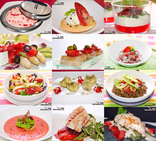 Sobre estas líneas podéis ver la variedad de aperitivos, entrantes y platos principales que podemos hacer con esta fruta, son Doce recetas saladas con fresas entre las que esperamos que encontréis varias que sean de vuestro agrado. En algunos casos se combinan ingredientes que quizá os puedan sorprender, pero os animamos a probarlas para descubrir que la sorpresa es grata.
