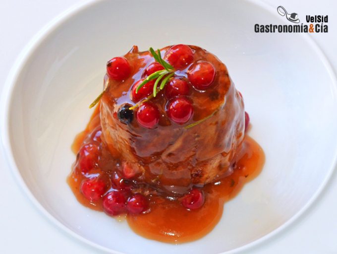 Solomillo con glaseado de arándanos y parmentier de romero y ajo