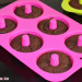 Rellena los moldes con forma de donut o rosquilla sin llegar arriba, debes dejar un pequeño margen, aunque no crecen demasiado. Para que la masa quede bien asentada, levántala y déjala caer sobre la mesa de trabajo varias veces. Coloca los moldes en la bandeja del horno.