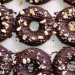 Desmolda los donuts y colócalos sobre la rejilla o sobre papel vegetal. Funde el chocolate y piza las avellanas tostadas. Dibuja al gusto con el chocolate sobre los donuts y después repare las avellanas para que se queden pegadas, deja que el chocolate se enfríe.