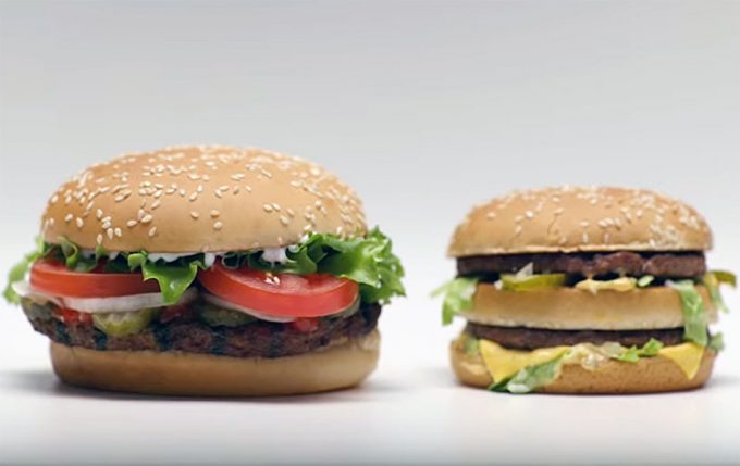 El año 2019 está tocando a su fin y Burger King ha considerado que ya es el momento de revelar un secreto (#WhopperSecret) con el que se ha demostrado que su icónica hamburguesa Whopper, supera en tamaño a la hamburguesa de su principal competidor, la Big Mac de McDonald’s. Al parecer, y según se puede ver en el vídeo, durante todo un año una Big Mac de McDonald’s ha estado presente en los anuncios de la Whopper de Burger King, evidentemente no se veía porque estaba colocada detrás de la hamburguesa.