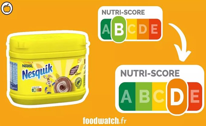 Como se puede apreciar en la imagen bajo estas líneas, un producto como el Nesquik pasa de una valoración de “B” a una valoración de “D”, dado que se trata de un producto que debe mezclarse y consumirse en estado líquido, es obvio que los cálculos se realicen según el modo en el que se consume, es decir, como bebida.