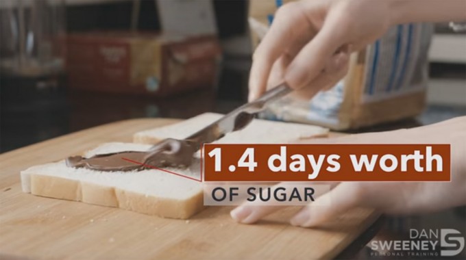 Este vídeo ha sido realizado por un nutricionista y entrenador personal preocupado por el futuro de la población, se llama Dan Sweeney. Su forma de enseñar el azúcar oculto en los alimentos es similar a la de la campaña australiana antes mencionada. En lugar de ver los cereales de desayuno en el cuenco, vemos el volumen en azúcar refinado, también podemos ver cómo se unta el azúcar cual Nutella, y cómo el padre se toma un refresco de cuya lata sale el azúcar a raudales.