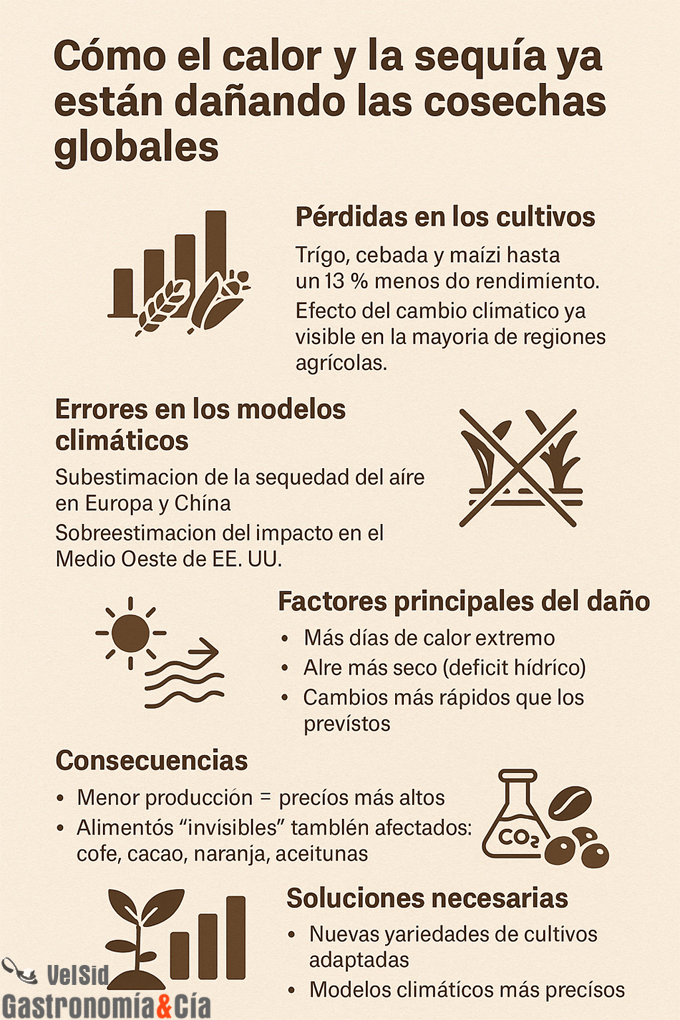 Muchos agricultores están trabajando con temporadas de cultivo que son más cálidas que casi cualquier otra temporada en los últimos 50 años, los expertos apuntan que no todos los modelos climáticos han logrado predecir correctamente esta situación. Por ejemplo, en zonas consideradas templadas como Europa y China, el nivel de sequedad del aire ha sido mucho más elevado de lo que se preveía, algo que lamentablemente complica aún más la situación.