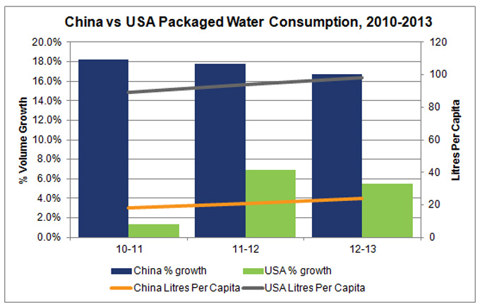 Las empresas que se dedican al envase de agua centran especialmente su atención en China, el consumo de agua embotellada se dispara en ese país hasta el punto de que está a punto de convertirse en el mayor consumidor del mundo, al menos así lo determina un informe de Canadean, empresa especializada en los análisis y las investigaciones de mercado relacionadas con el mundo de las bebidas.