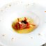 Asamos los pimientos de piquillo en una sartén, una vez dorados agregamos el líquido de los pimientos y glaseamos. Retiramos y añadimos unos pétalos de la cebolla previamente cocinada en microondas durante 3 minutos para luego cortar y marcar con un poco de mantequilla de mojo Gomero. Una vez dorada la flambeamos con un toque de ron.