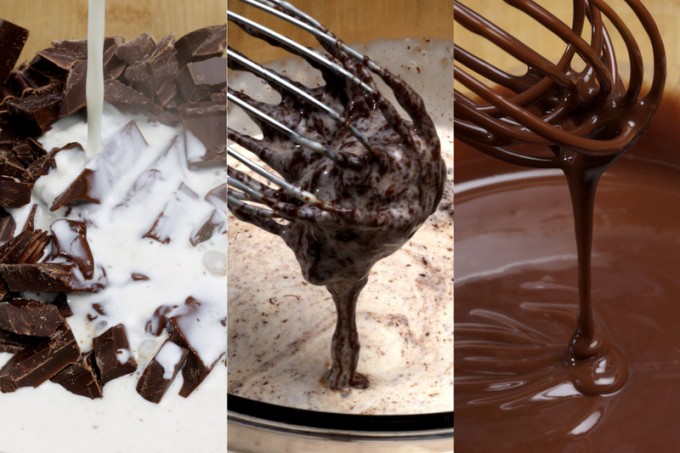 El ganache básico se elabora con igual proporción de crema de leche o nata y chocolate, este preparado ha tenido como fin ser el relleno o la cobertura de tartas y bombones, proporcionando un cremoso sabor a cacao con miles de opciones aromatizantes.
