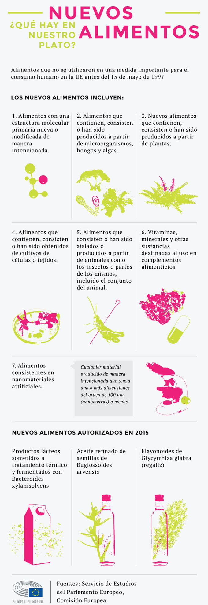 Hoy se ha votado en el Parlamento Europeo un informe sobre la simplificación de las normas sobre nuevos alimentos, es decir, aquellos alimentos que no se han utilizado en una medida importante para el consumo humano en la Unión Europea antes de 1997, como por ejemplo los insectos, los alimentos que se han producido a partir de microorganismos, hongos y algas, los alimentos que contienen, consisten o se han obtenido a partir de cultivos de células o tejidos, los alimentos desarrollados con nanotecnología, los alimentos que proceden de fuera de la UE, etc.