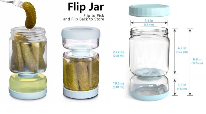 Inspirado en un reloj de arena, se presenta el tarro para encurtidos que está de moda y quien lo prueba asegura haber descubierto un gran aliado para no tener que mojarse los dedos para coger las aceitunas, o no tener que ensuciar cucharas perforadas u otros utensilios para sacar los pepinillos de su líquido.