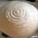 Esta es la primera elaboración de pan con las cestas de pan, brotforms o bannetons que esta mañana os hemos enseñado, utilizamos dos moldes, aunque el que no aparece en la foto no quedó demasiado bonito, al pasar la masa de la cesta de levado a la bandeja del horno se deformó un poco… la práctica nos hará mejorar en la elaboración de pan.