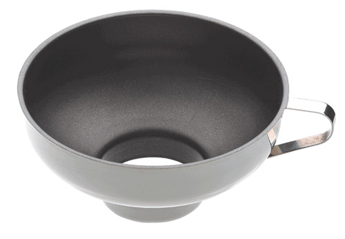 Este embudo es muy práctico, es económico y funcional. Hemos buscado algunas fotos para mostraros cómo son los actuales, el que ilustra este post es de la tienda inglesa Denny & Son, fabricado en acero inoxidable y con el interior cubierto de una capa antiadherente, posiblemente teflón. El diseño está bien pero preferimos que sea completamente de acero inoxidable, material de calidad, de fácil limpieza y muy duradero.
