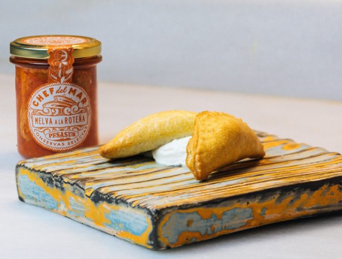 Otra particularidad de esta receta es que el chef del restaurante Aponiente de El Puerto de Santa María (Cádiz), utiliza para rellenar esta masa de empanadillas hecha con harina de garbanzo, una de las conservas de pescado que ha creado en colaboración con una empresa especializada. Con el nombre ‘El Chef del Mar’, dispone de una línea de siete conservas con atún, melva y caballa con recetas propias, como la que constituye la farsa de estas empanadillas, al melva ‘a la roteña‘.