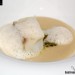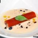 Continuamos con un Canelón de pimiento, bonito y turrón, éste en forma de sopa y con unas virutas de aceitunas negras deshidratadas que acompañaban muy bien. Todos los sabores del plato eran frescos y muy naturales, equilibrados en conjunto, sencillo y correcto. Nos sorprendió más el Soparet Alicantí, un plato tradicional exquisitamente actualizado, compuesto por huevo a 65º C hecho en Roner, crema de patata, pulpa de tomate, hojas de espinaca, ñora y una sabrosa sardina rebozada.