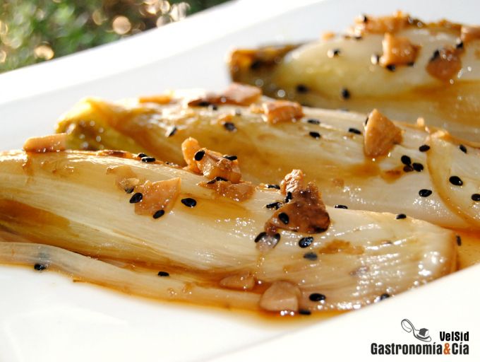 Es muy habitual que en las recetas con endibias éstas se sirvan crudas, en ensaladas generalmente, hasta que se descubre que cocinadas son una auténtica delicia, como estas Endibias con salsa de ostras. Otras ideas para preparar las endibias en caliente (se pueden asar, cocer, freír, hacer a la parrilla…) son la Ensalada caliente de pollo con tomate y endibias al horno, las Endibias con queso de cabra y bacon…