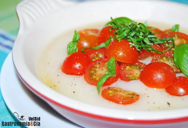 Además, esta particular ensalada caprese se elabora en cinco minutos, sólo es necesario poner los ingredientes en un recipiente apto para microondas y dejar que en dos minutos se funda el queso, en este caso, utilizamos mozzarella curada en lugar de mozzarella fresca. Los tomates y la albahaca las añadimos después, bueno, mejor os lo explicamos a continuación.
