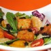 La Ensalada con queso rebozado os muestra además una de las utilidades del Tapenade de aceitunas y tomate seco, le hemos añadido un punto dulce, que le va muy bien al queso de cabra rebozado, con la mermelada de pimientos o pimientos confitados, además de un buen aceite de oliva virgen extra. El resultado es excelente, una buena ensalada para iniciar un menú exquisito.