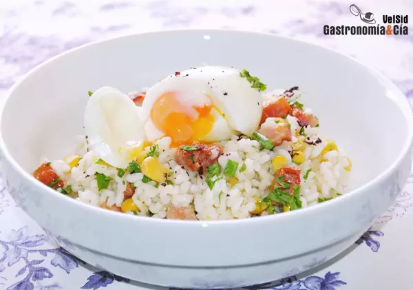 El arroz es tan versátil como la pasta a la hora de hacer una ensalada, aunque tenemos la sensación de que no se hacen tantas. El primer ejemplo somos nosotros, las elaboramos muy de vez en cuando porque cuando hacemos arroz nos decantamos más por otras elaboraciones, como arroces de paella, risottos, etc. También solemos hacerlas diferentes a las recetas tradicionales que incorporan atún, gambas, pimiento… a ver qué os parece esta Ensalada de arroz, bacon y huevo.