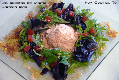 Carmen nos explica el inconveniente de esta receta de ensalada de foie, que se tiene que preparar al instante y manipular rápido el foie. Seguro que este detalle sólo hará que preparemos muchas veces esta ensalada, receta rápida de hacer y una vez servida a comer sin demora, el disfrute está garantizado.