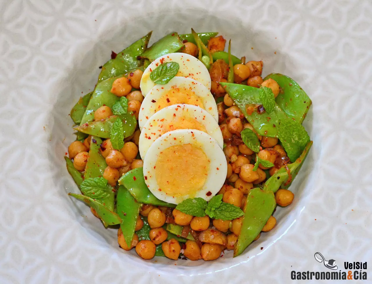 Sirve el empedrat de garbanzos o ensalada de garbanzos con atún en platos hondos o en unos boles bonitos, corona con el huevo duro y condiméntalo con una pizca de sal y aove, y a disfrutar. ¡Buen provecho!