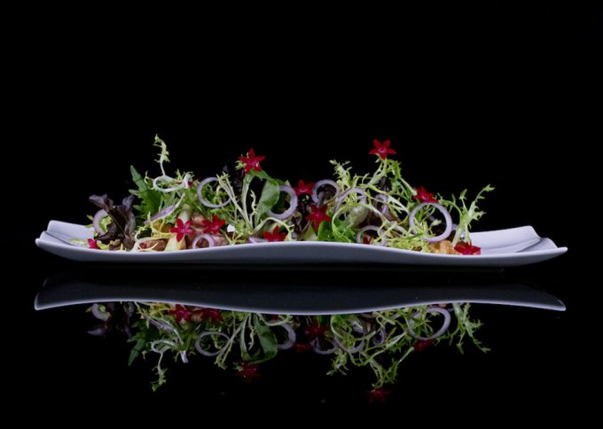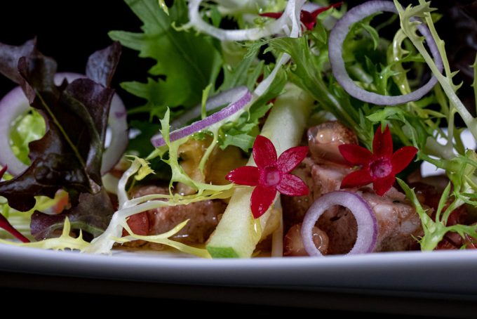 Para hacer las rocas de chocolate y granada que compartimos con vosotros hace ya unos años en este post, nos inspiramos en una receta de Susi Díaz, pero la chef del restaurante La Finca de Elche (Alicante), tiene otras tantas recetas con esta fruta que está en plena temporada y hoy queremos compartir una de ellas, es la Ensalada de paté de campaña con granada mollar de Elche y manzana, la que veis ilustrando con elegancia estas líneas.
