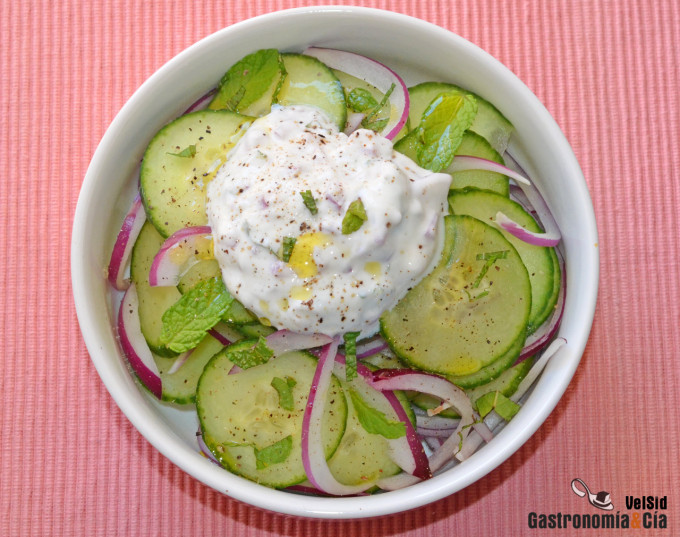 Un clásico del verano son las ensaladas de pepino, hay una gran variedad de recetas, tanto tradicionales y populares que pertenecen a distintas culturas gastronómicas, como de las que se heredan en la familia y parece que sólo la tuya disfruta de ese plato. En casa hacemos una muy sencilla cuando queremos un acompañamiento fresco de cualquier comida, o un aperitivo sano y rico, es esta Ensalada de pepino con salsa de yogur y hierbabuena, sencilla, refrescante y ligera.
