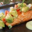 El relleno se puede variar al gusto, pero ante un extenso menú con platos principales contundentes, la Ensalada de surimi, aguacate y salmoriglio resulta suave al paladar. Equilibramos sabores neutros como el del aguacate, con ligeros sabores marinos del surimi, el cítrico de la salsa salmoriglio y el carácter de la rúcula y la hoja de mostaza, una delicia que os recomendamos probar.