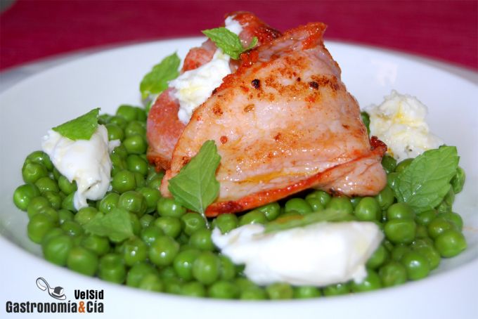 Este plato solemos hacerlo con solomillo de buey, pero hoy no teníamos así que hemos preparado esta Ensalada tibia de guisantes, lomo adobado y mozzarella, cuyo resultado también nos ha satisfecho. Solomos comprar buenas piezas de lomo que adobamos con pimentón de la Vera, ajo, hierbas secas (como orégano, tomillo, romero, salvia…), además de algunas especias como pimienta, comino o zumaque, entre otras.