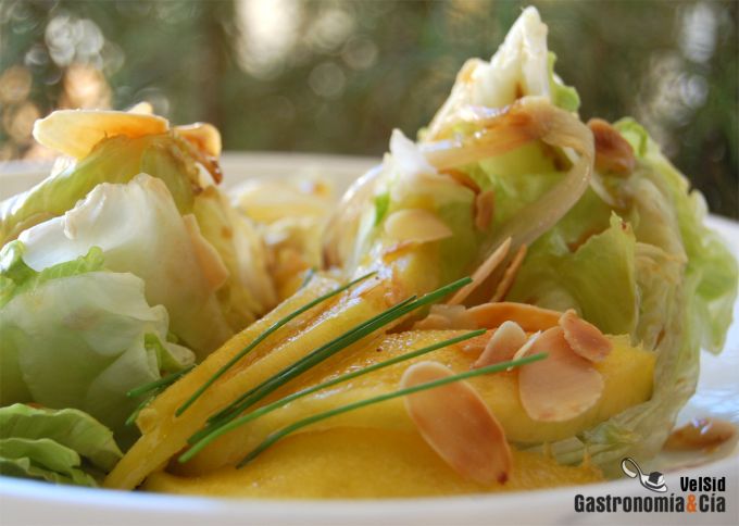 Ensalada de lechuga iceberg con mango y almendras