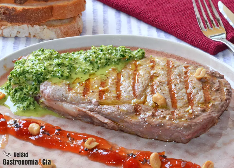 Siempre solemos comentar lo mismo, una buena carne o un buen pescado no necesitan nada más que un buen punto de cocción para ser una delicia, tanto si se cocinan a la brasa, como al horno, a la plancha… Pero de vez en cuando apetece hacer una receta diferente para disfrutar de la carne y/o del pescado, o sencillamente de aportarle nuevos sabores y texturas con salsas y condimentos. Hoy os traemos una idea para hacer un plato sencillo y delicioso a base de carne, es nuestro Entrecot a la parrilla con pesto de kale y cacahuetes tostados.
