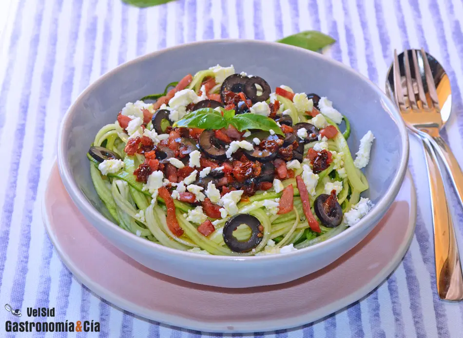 Si ya tenéis preparado el aparato para cortar el calabacín en forma de espaguetis y estáis buscando una receta que resulte sencilla, fresca y deliciosa para comer, aquí os dejamos una buena propuesta, son unos Espaguetis de calabacín con bacon, tomates secos y aceitunas que no pueden ser más fáciles de hacer, y tened la certeza de que a vuestros comensales les encantarán.